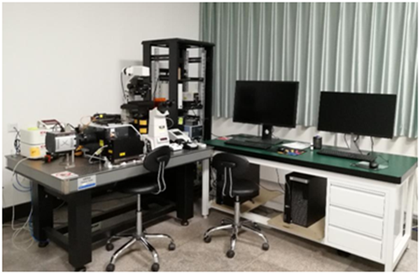 大型仪器共享平台配有生物激光和高速转盘式激光两台共聚焦显微镜。生物激光共聚焦显微镜为德国Leica公司生产,可以实现多色成像,3D成像,拼图,多点采集,动态追踪,FRAP,FRET等多种模块,此外还有图像处理,定量分析等工具。高速转盘式激光共聚焦显微镜为英国andor公司生产,此仪器的突出优点为:为细胞提供与培养箱一样的环境,并进行长时间快速活细胞成像;防止细胞热漂移;且配备了TIRF功能,追踪信号分子从细胞膜到细胞内部整体成像。
